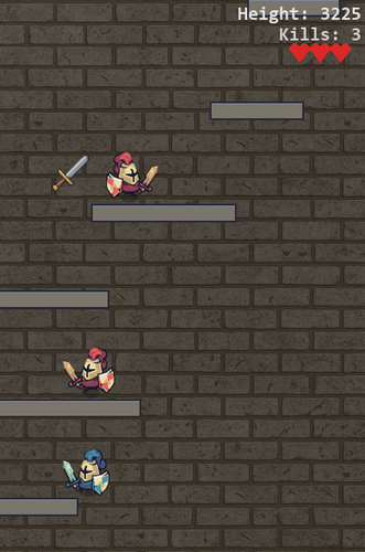 TowerKnights is a fast-paced vertical action platformer. Climb higher and higher while avoiding enemies, landing on narrow platforms, and fighting your way up with your sword.